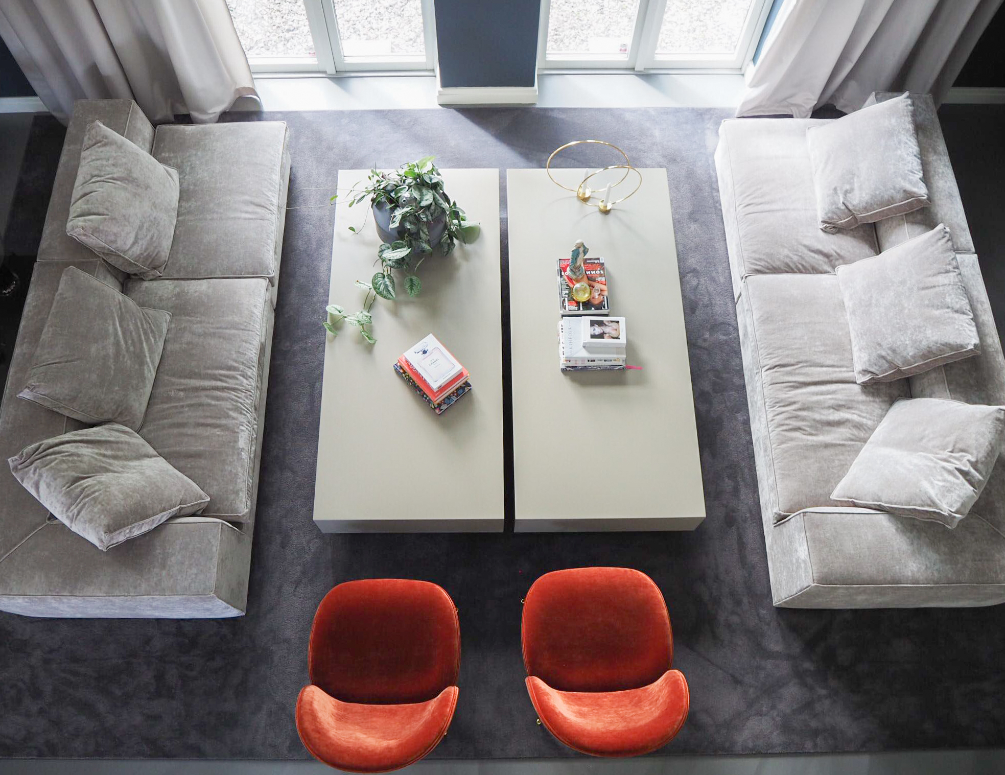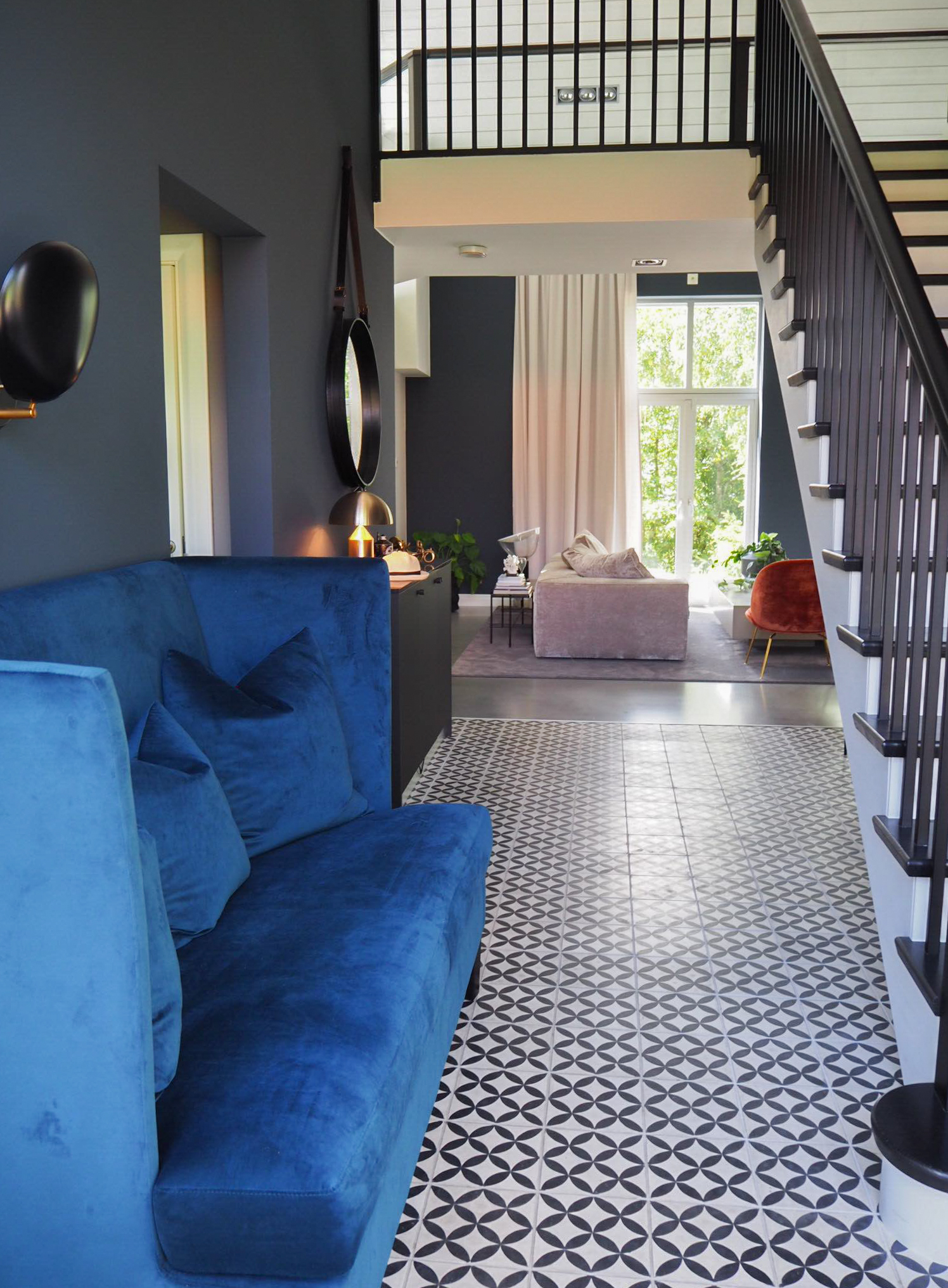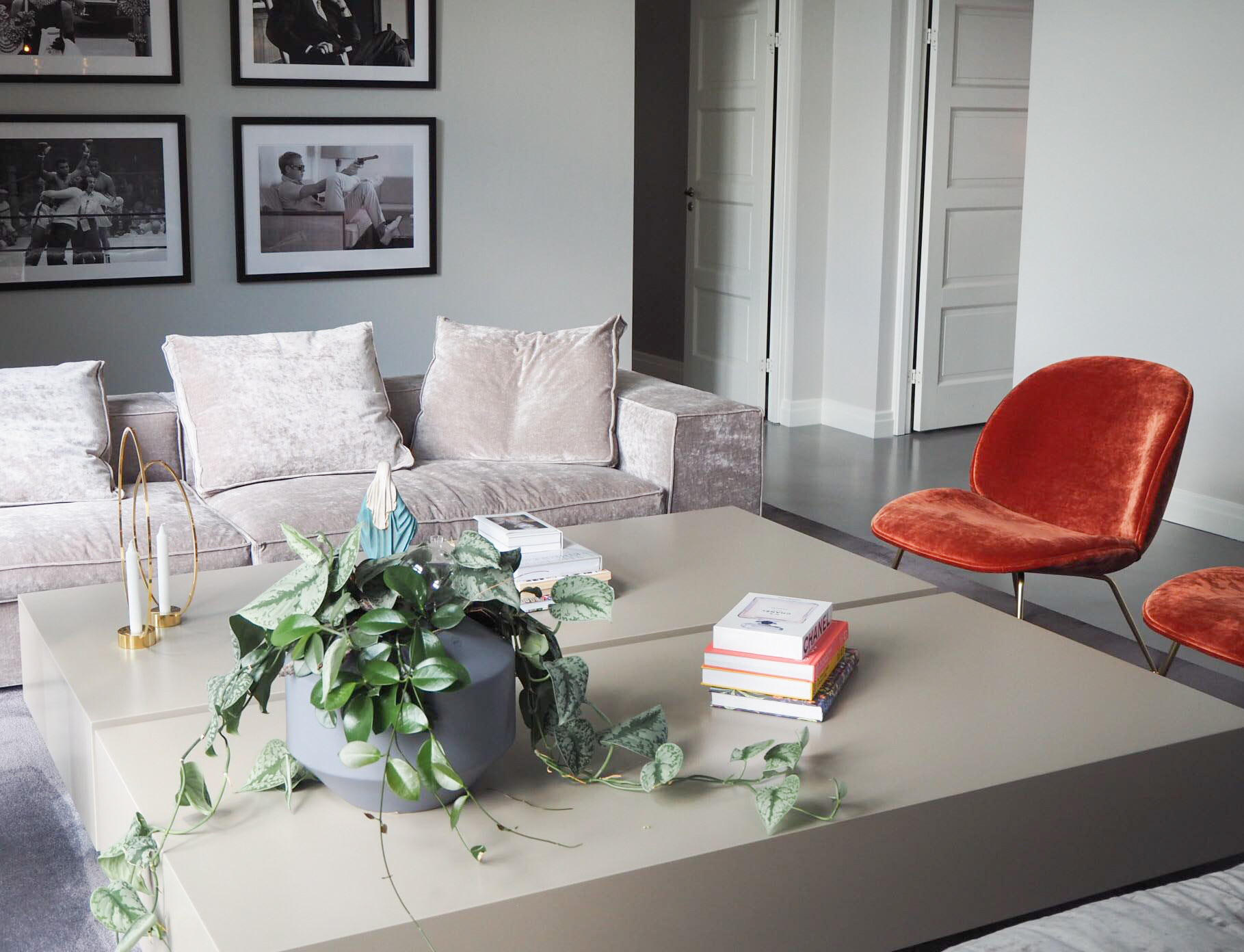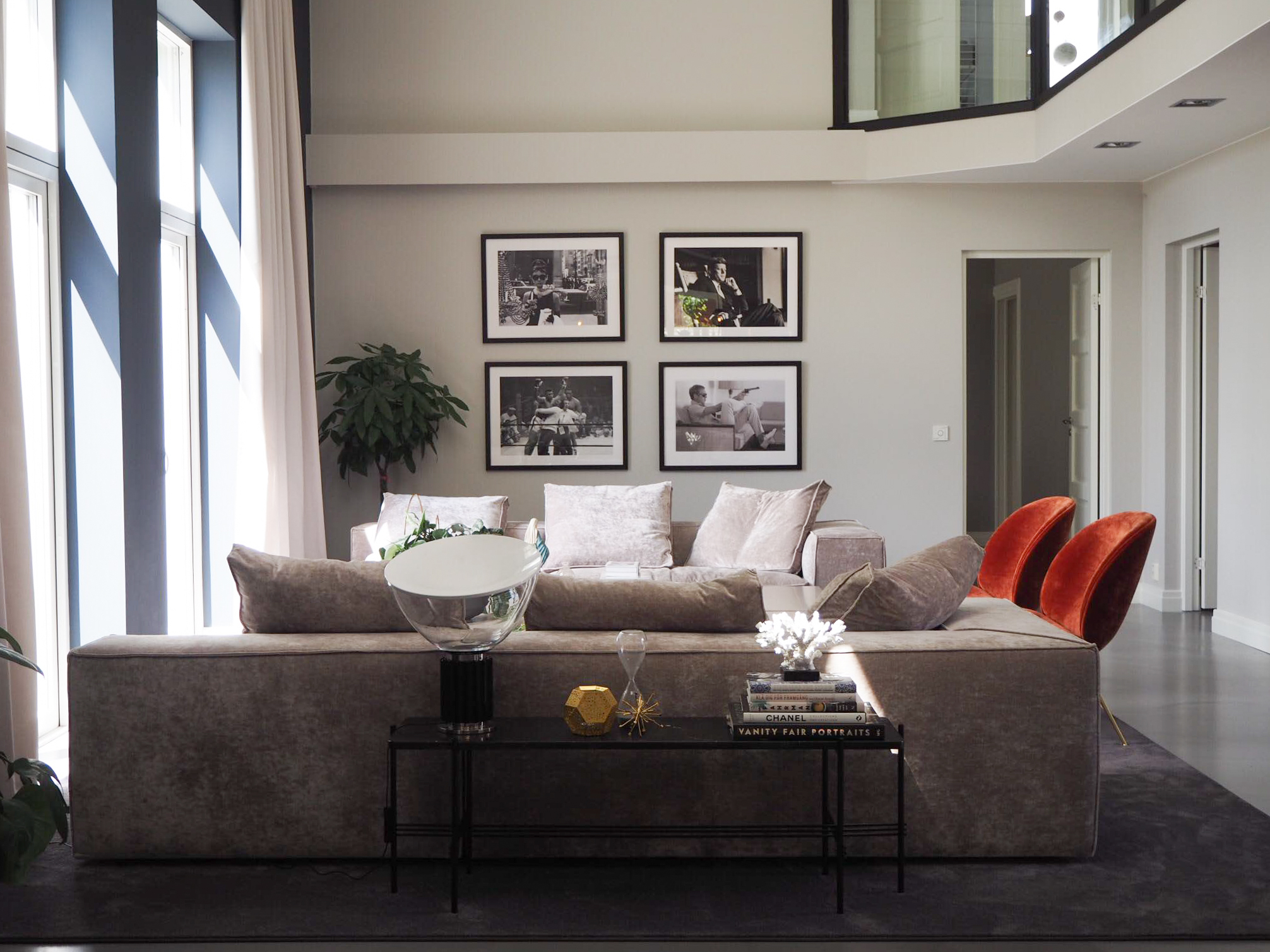 Genom noggrant utvalda färgpaletter, möblering med tydlig karaktär och ett sammanhängande materialkoncept skapades ett hem med stark identitet och varm atmosfär. Textilier som sammet och linne kombineras med en sömlös betonggolvyta och lager på lager av texturer, vilket ger ett sofistikerat men samtidigt inbjudande uttryck.