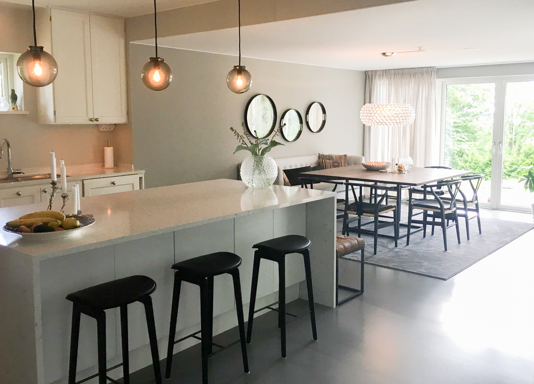 Resultatet är ett personligt och modernt hem där design, komfort och helhet samverkar anpassat för ett aktivt familjeliv med en tydlig känsla av samtida elegans.