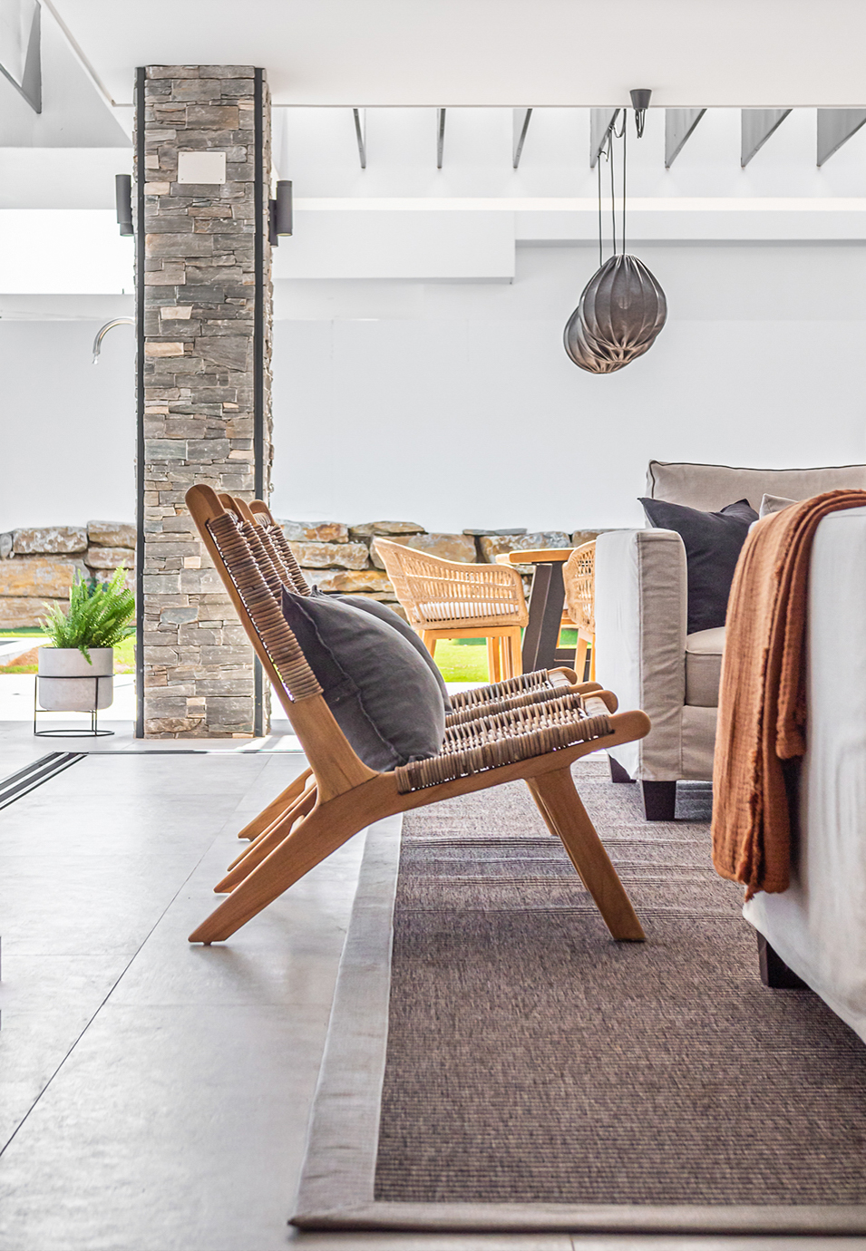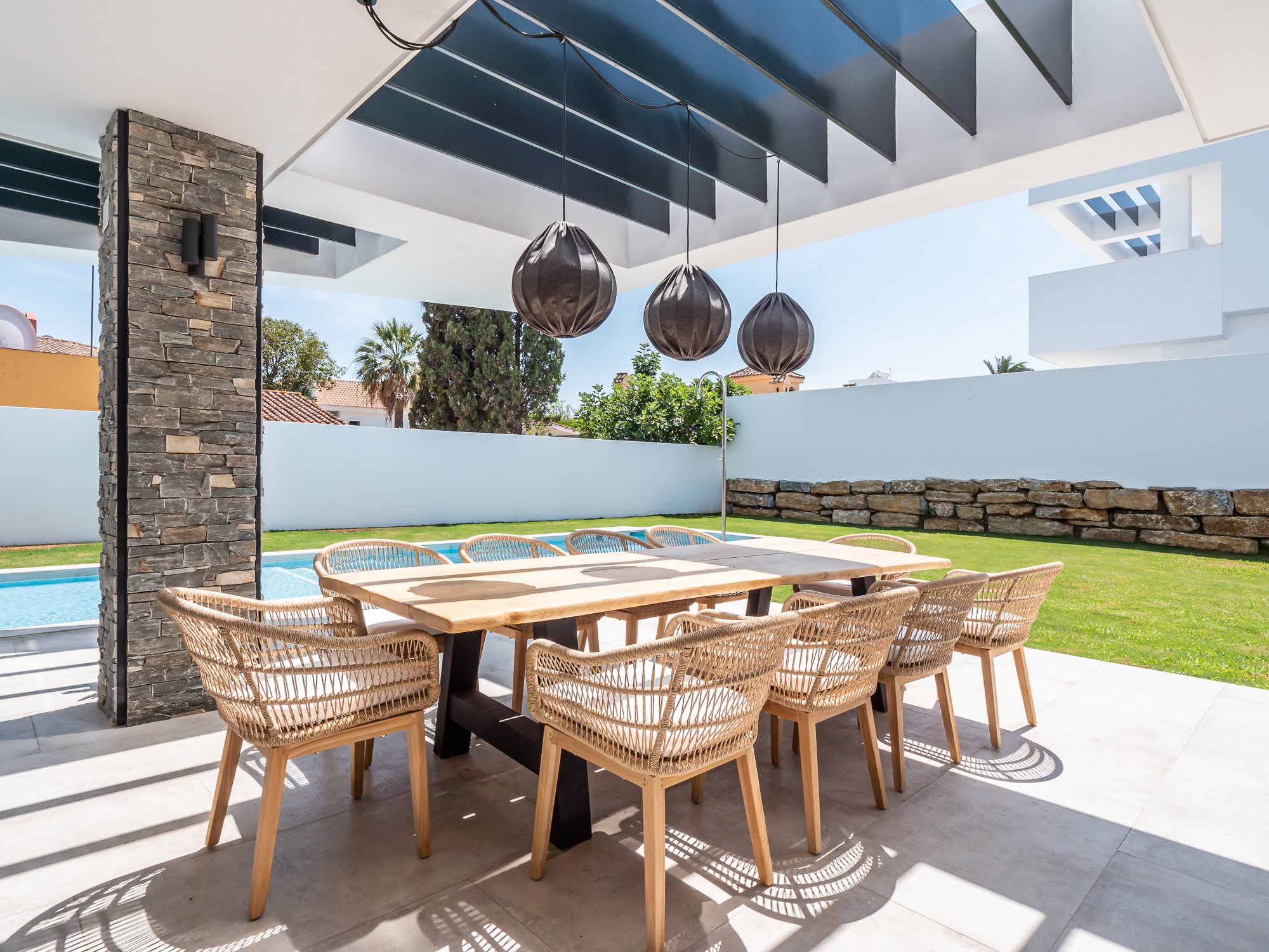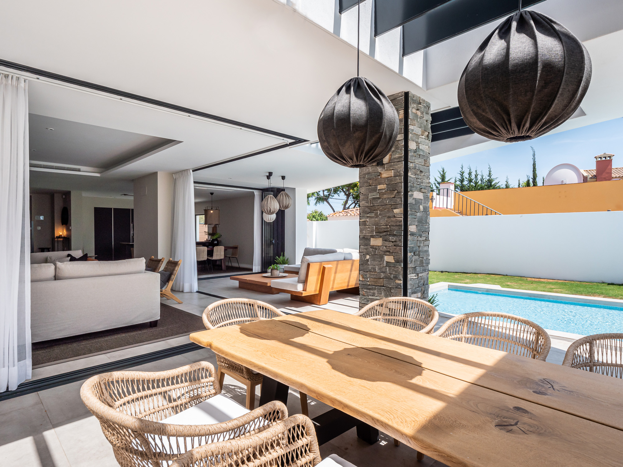Bottenvåningen utformades med fokus på ett sömlöst flöde mellan inne och ute – anpassat för det spanska klimatet och ett liv där sociala ytor och utomhusmiljöer är en naturlig del av vardagen.